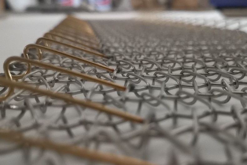 金屬裝飾網(wǎng)簾采用優(yōu)質(zhì)不銹鋼、黃銅、磷銅編織而成,經(jīng)過(guò)拉絲、捻股、合繩、織網(wǎng)、拋光、漂洗等工序。