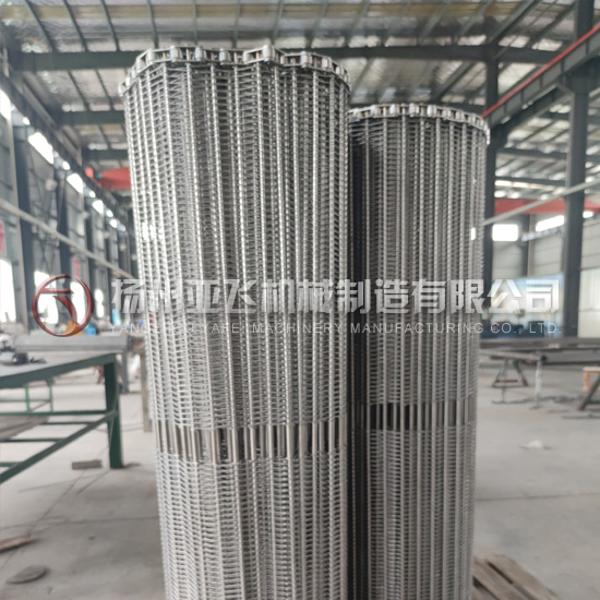 螺旋速凍機(jī)網(wǎng)帶也稱馬蹄式網(wǎng)帶,該金屬網(wǎng)帶用鉤編形式而成;編織簡潔、美觀實用,網(wǎng)帶也可采用標(biāo)準(zhǔn)鏈條傳動。